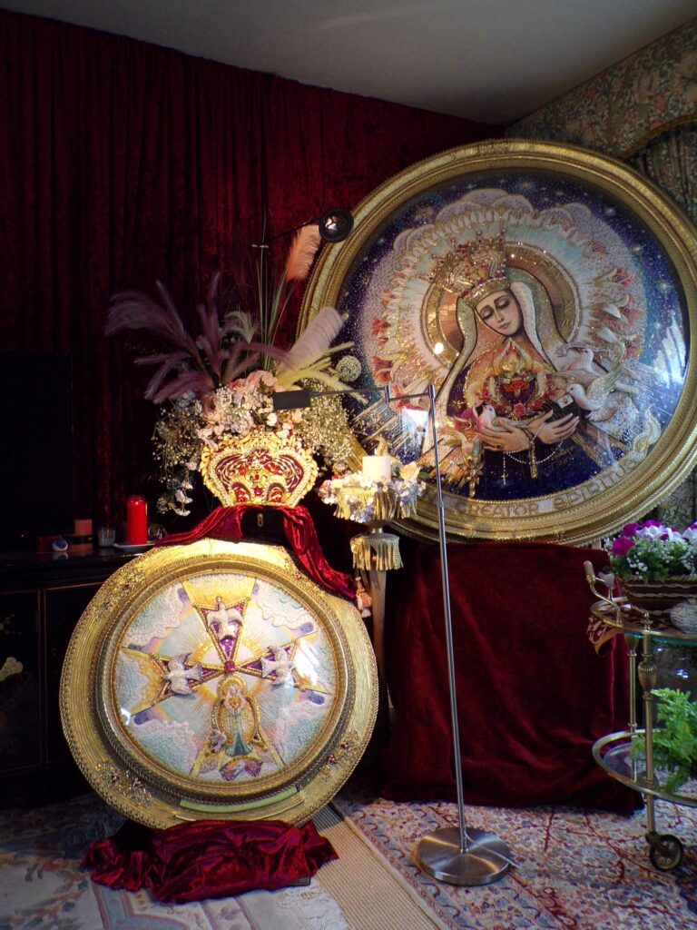 The Crowned Madonna represents the Kingdom of Heaven, ( thy KINGDOM COME) and is a massage of Light and Peace to the world by the Mother of God.